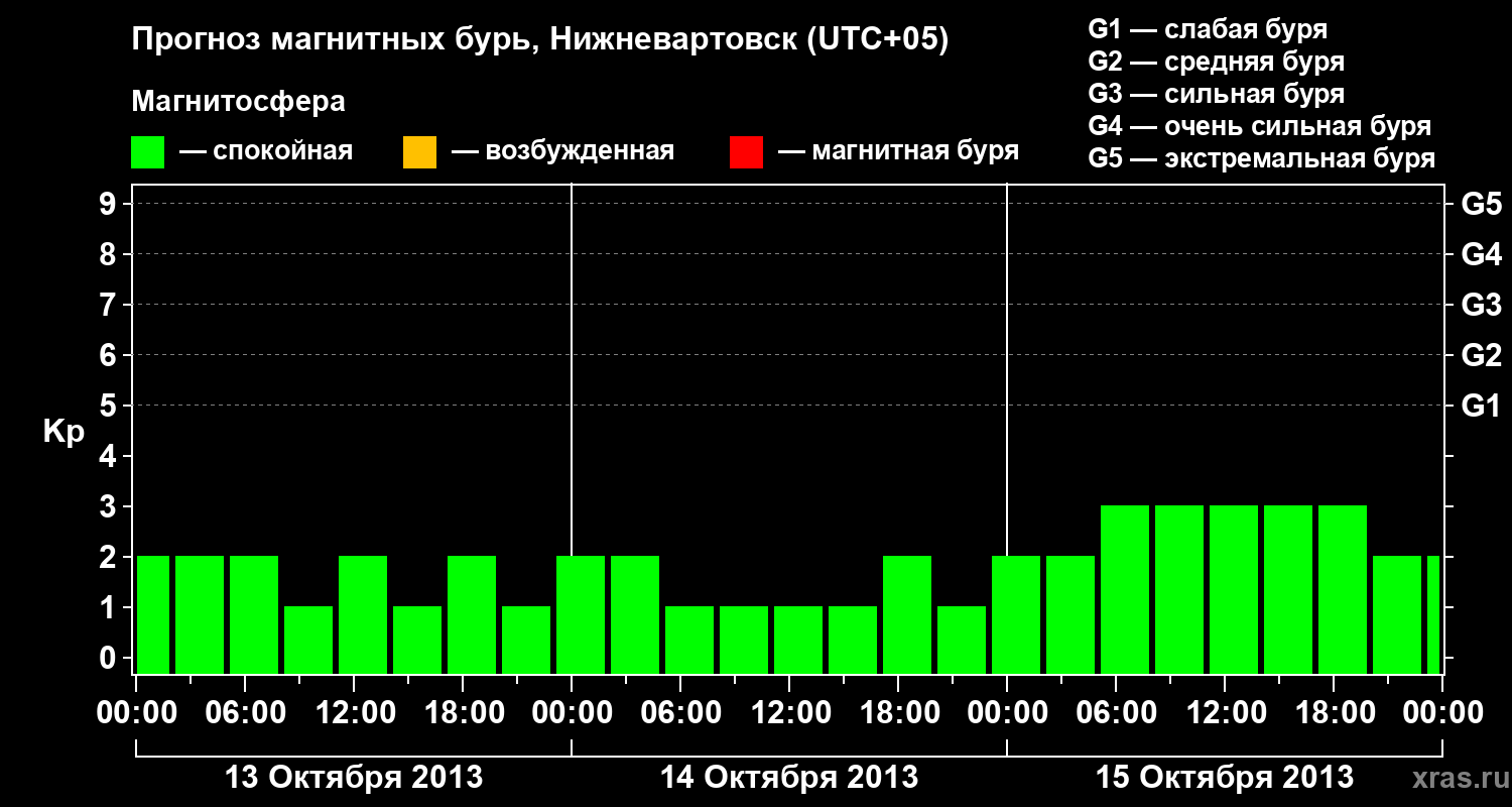 Прогноз магнитных бурь в Нижневартовске — 13 октября 2013 года