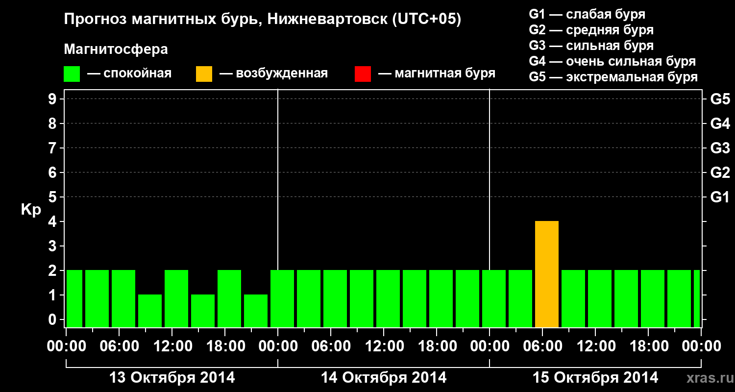 Прогноз магнитных бурь в Нижневартовске — 13 октября 2014 года