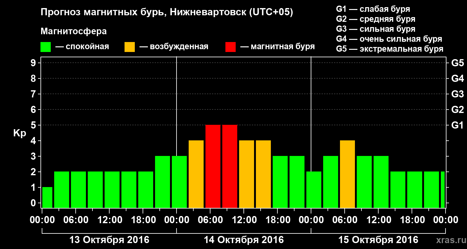 Прогноз магнитных бурь в Нижневартовске — 13 октября 2016 года
