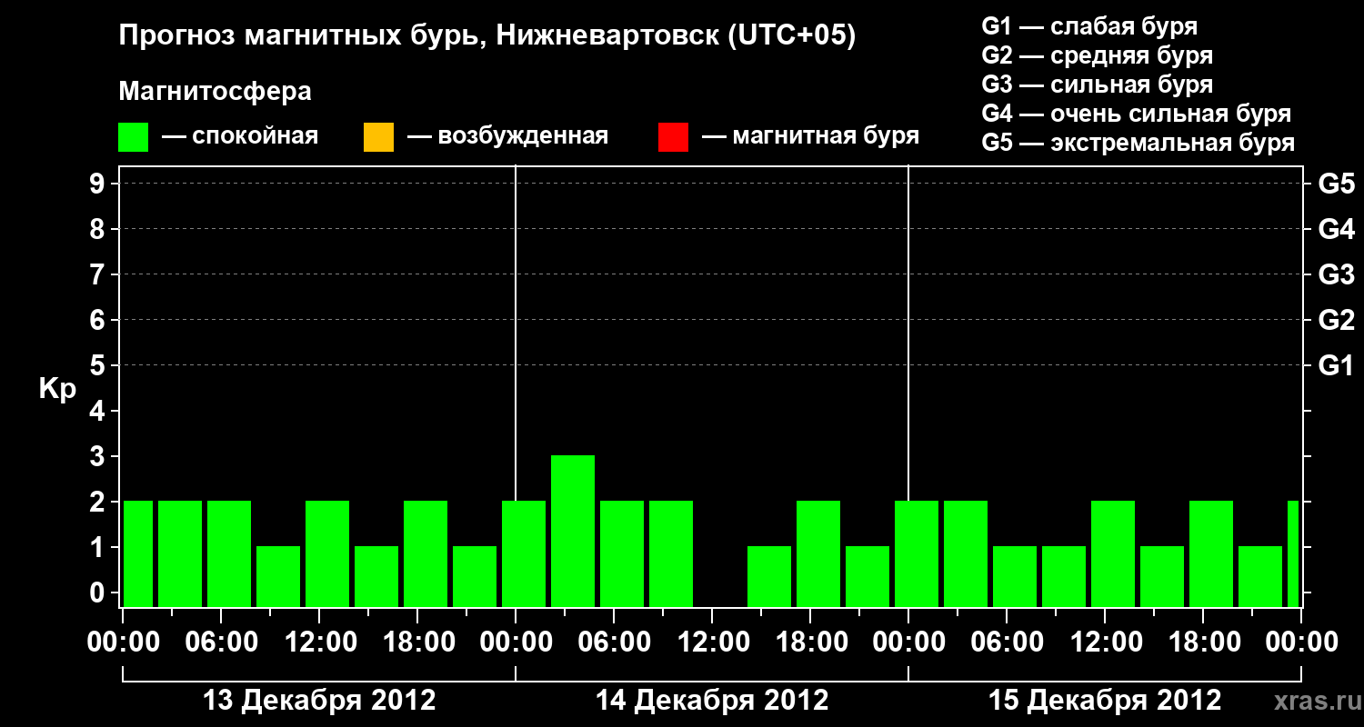 Прогноз магнитных бурь в Нижневартовске на 13 декабря 2012 года