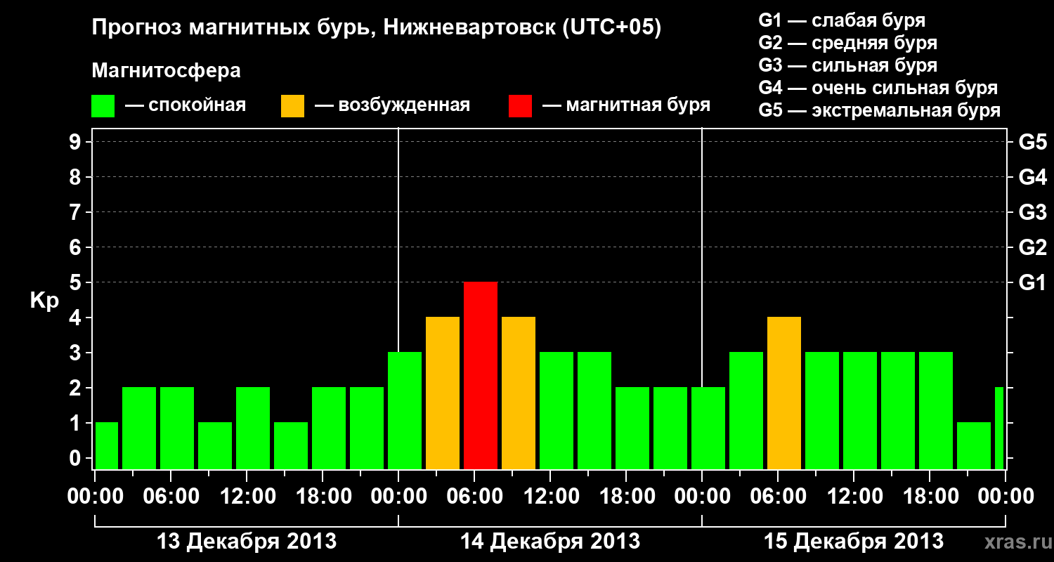 Прогноз магнитных бурь в Нижневартовске — 13 декабря 2013 года