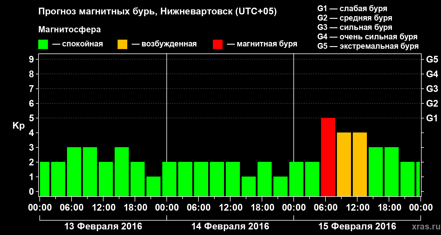 Прогноз магнитных бурь в Нижневартовске на 13 февраля 2016 года