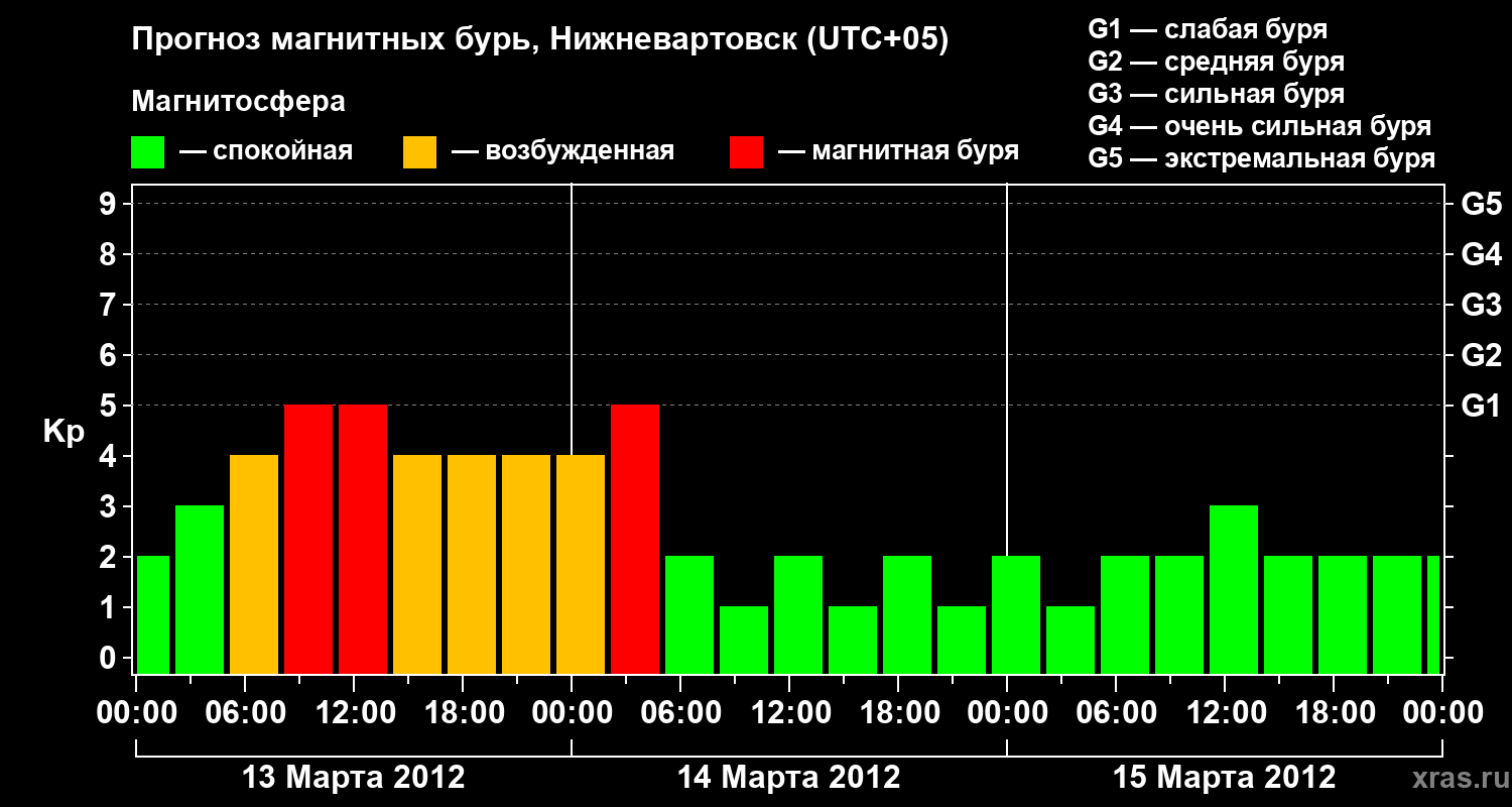 Прогноз магнитных бурь в Нижневартовске — 13 марта 2012 года