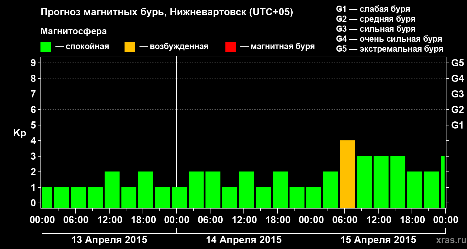 Прогноз магнитных бурь в Нижневартовске — 13 апреля 2015 года