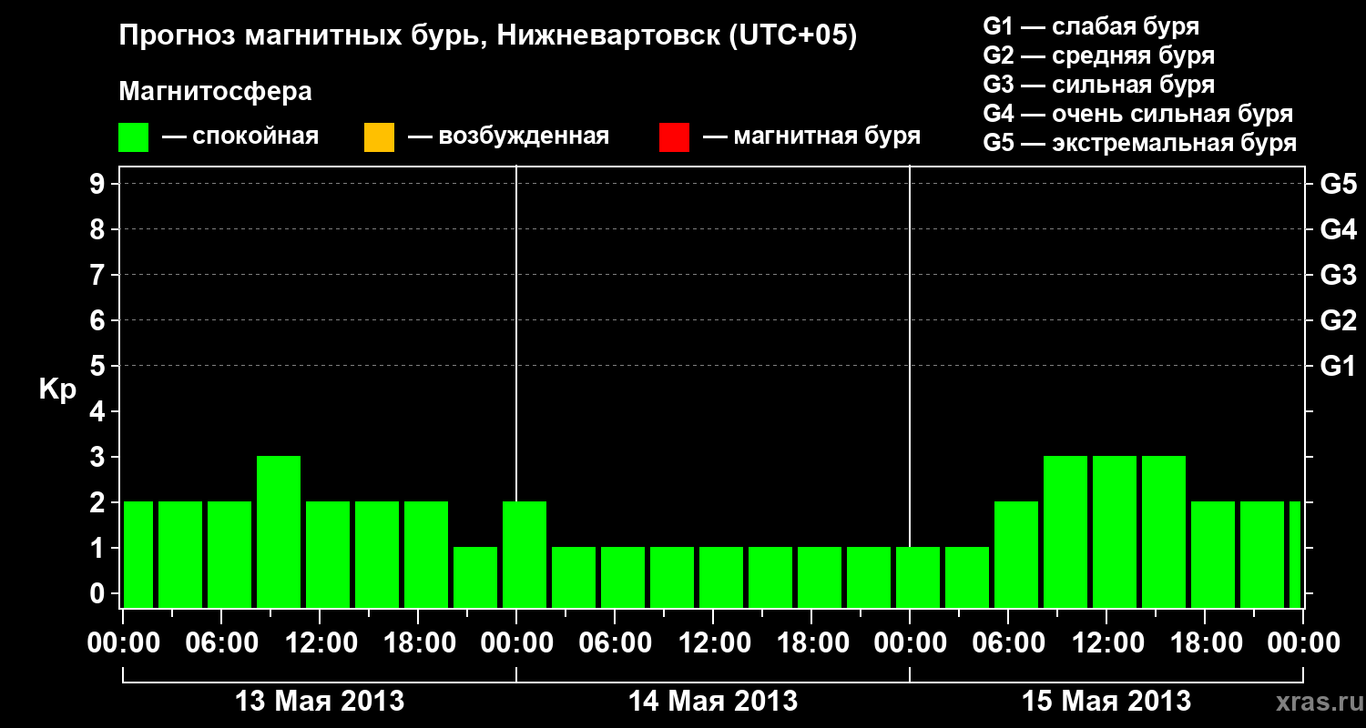 Прогноз магнитных бурь в Нижневартовске на 13 мая 2013 года