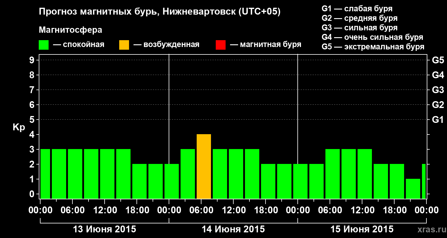 Прогноз магнитных бурь в Нижневартовске — 13 июня 2015 года