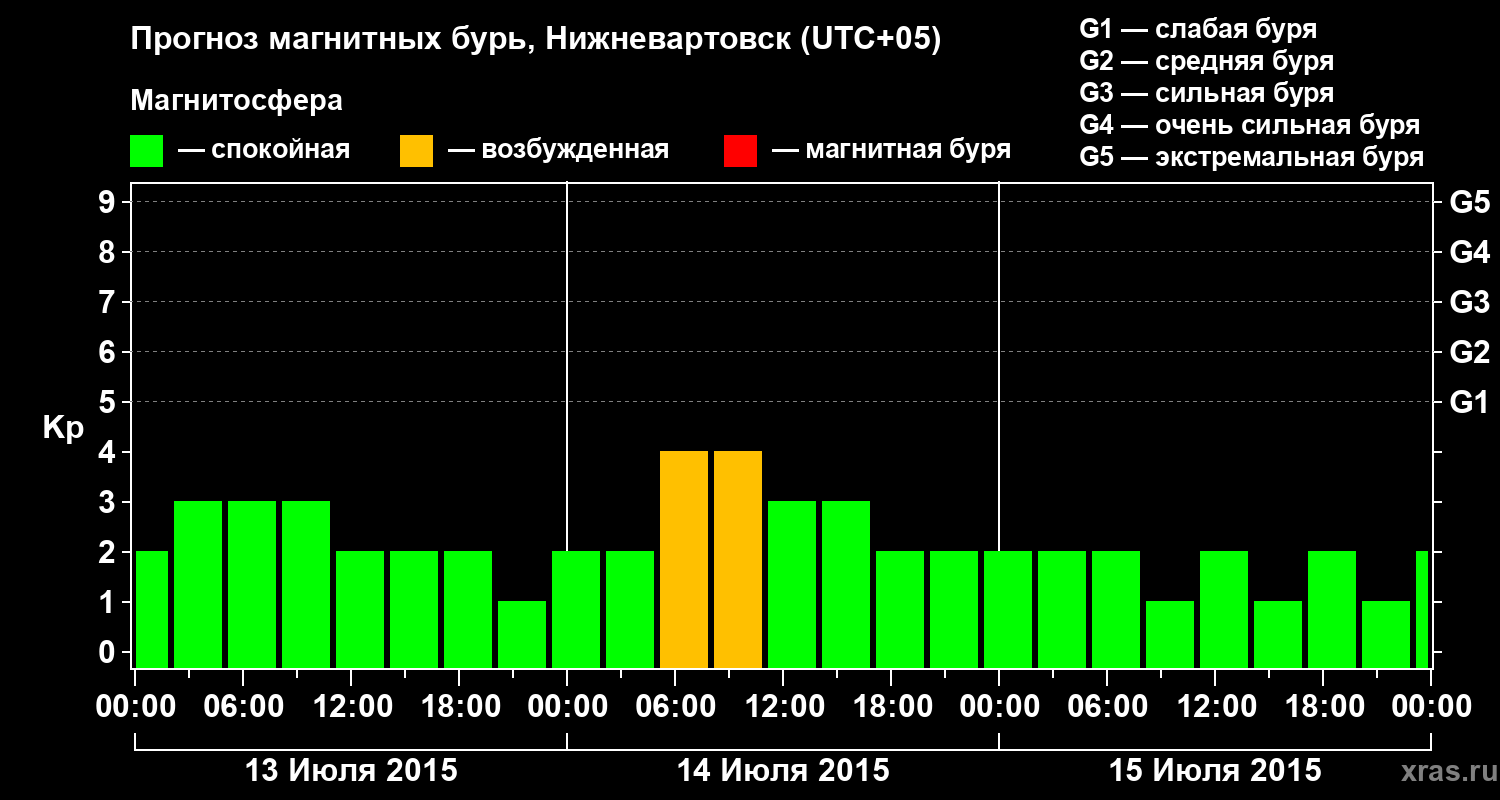 Прогноз магнитных бурь в Нижневартовске — 13 июля 2015 года