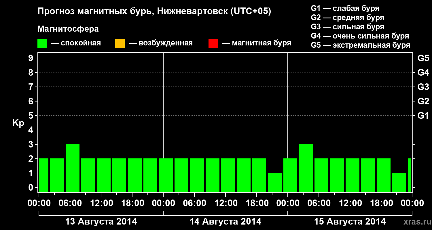 Прогноз магнитных бурь в Нижневартовске — 13 августа 2014 года