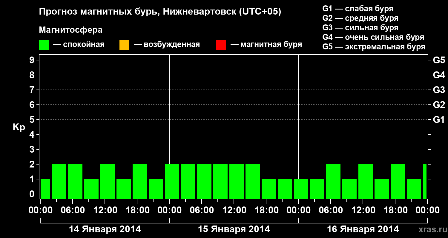 Прогноз магнитных бурь в Нижневартовске — 14 января 2014 года
