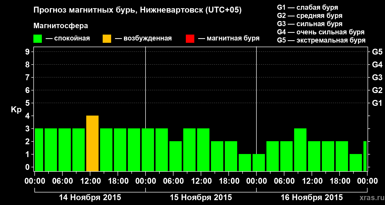 Прогноз магнитных бурь в Нижневартовске — 14 ноября 2015 года