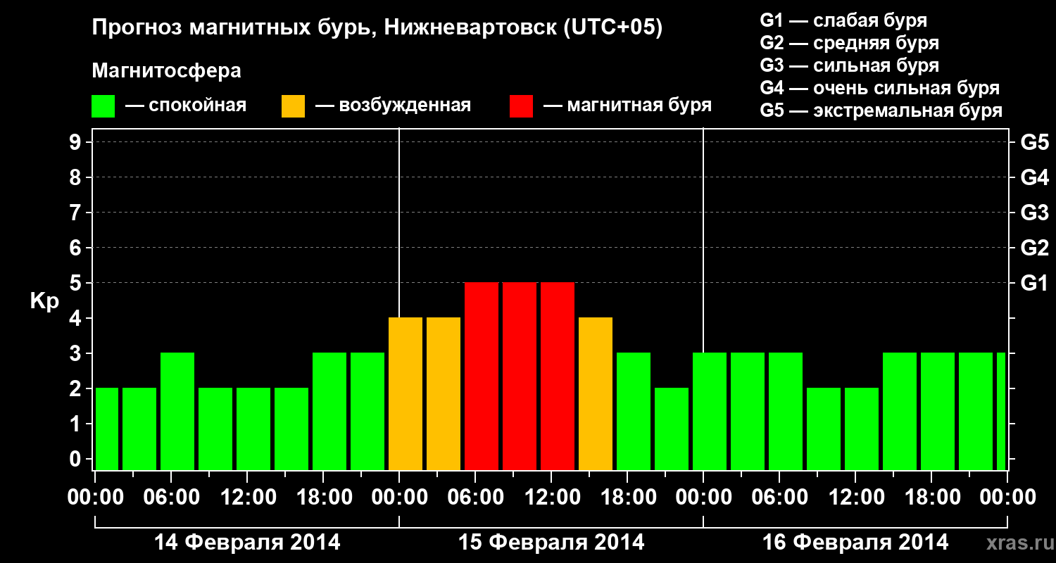 Прогноз магнитных бурь в Нижневартовске на 14 февраля 2014 года