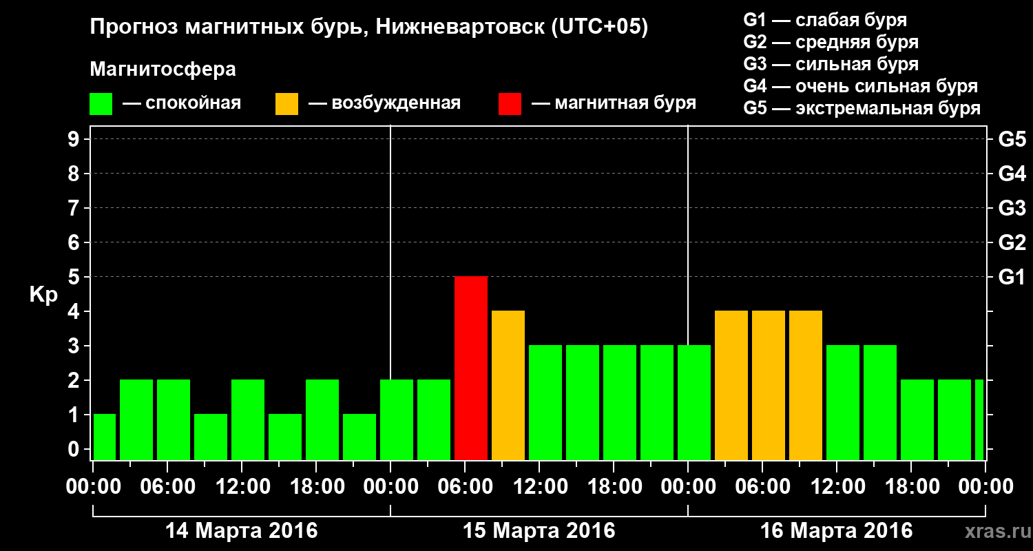Прогноз магнитных бурь в Нижневартовске — 14 марта 2016 года