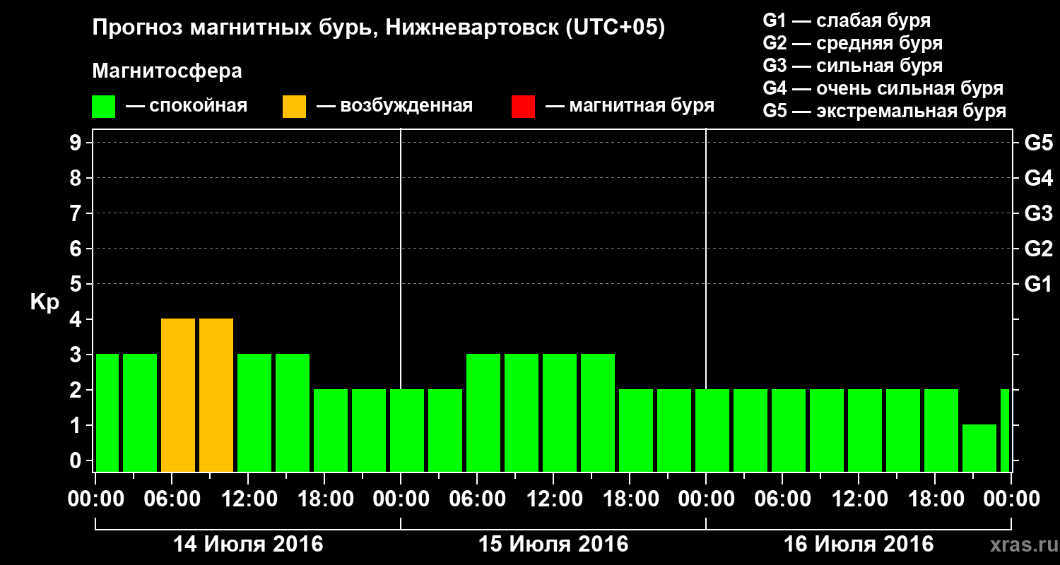 Прогноз магнитных бурь в Нижневартовске — 14 июля 2016 года