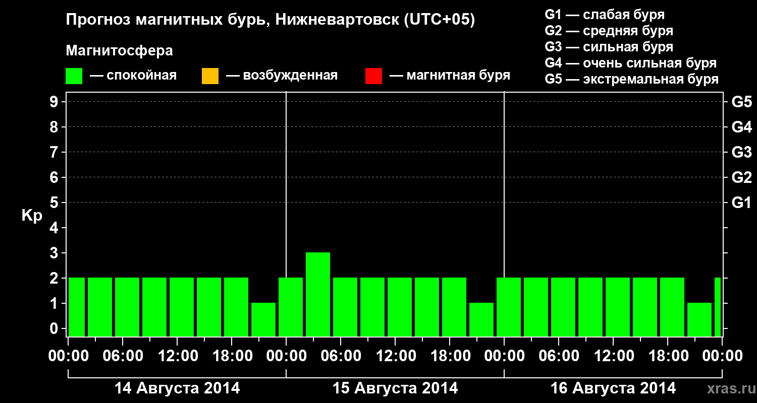 Прогноз магнитных бурь в Нижневартовске — 14 августа 2014 года
