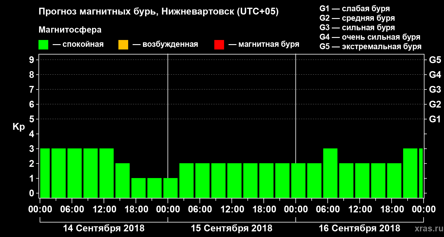 Прогноз магнитных бурь в Нижневартовске на 14 сентября 2018 года