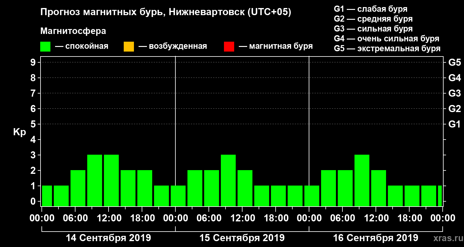 Прогноз магнитных бурь в Нижневартовске на 14 сентября 2019 года