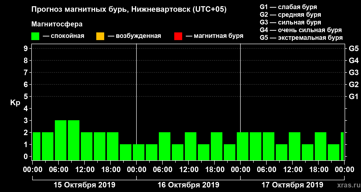Прогноз магнитных бурь в Нижневартовске — 15 октября 2019 года