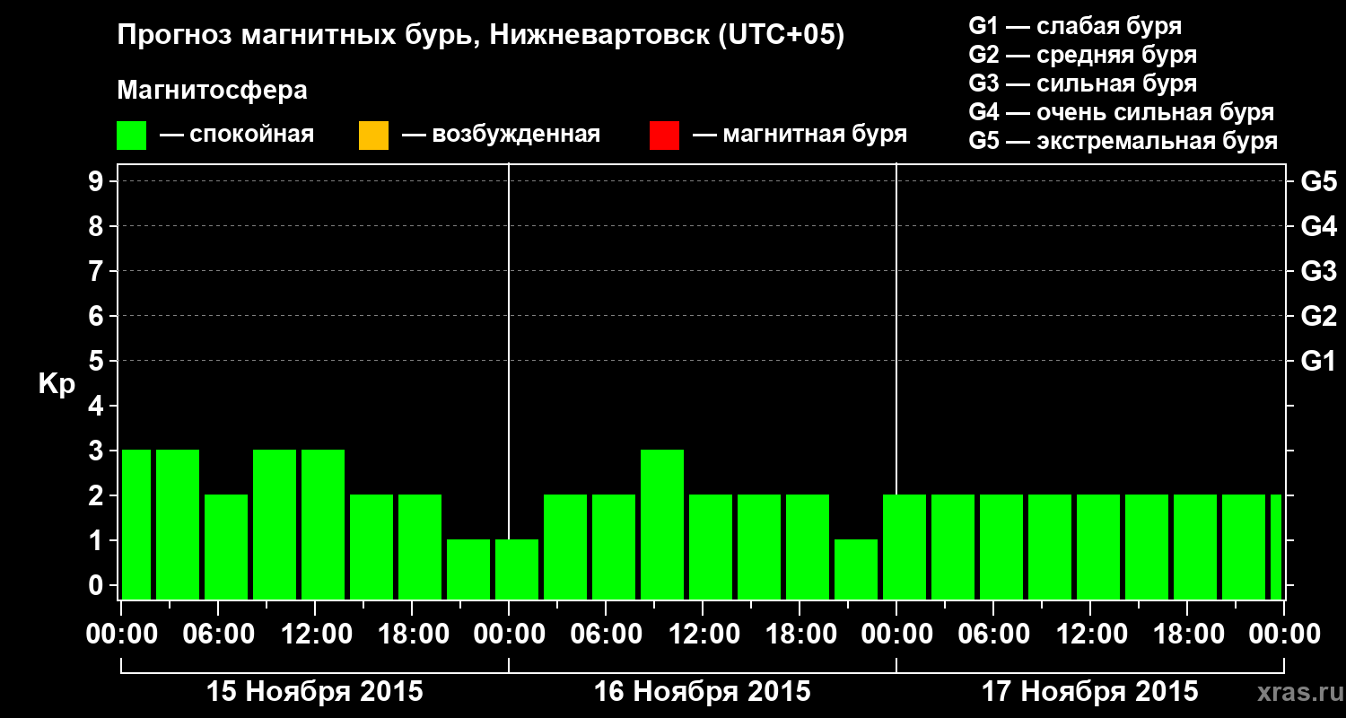 Прогноз магнитных бурь в Нижневартовске — 15 ноября 2015 года