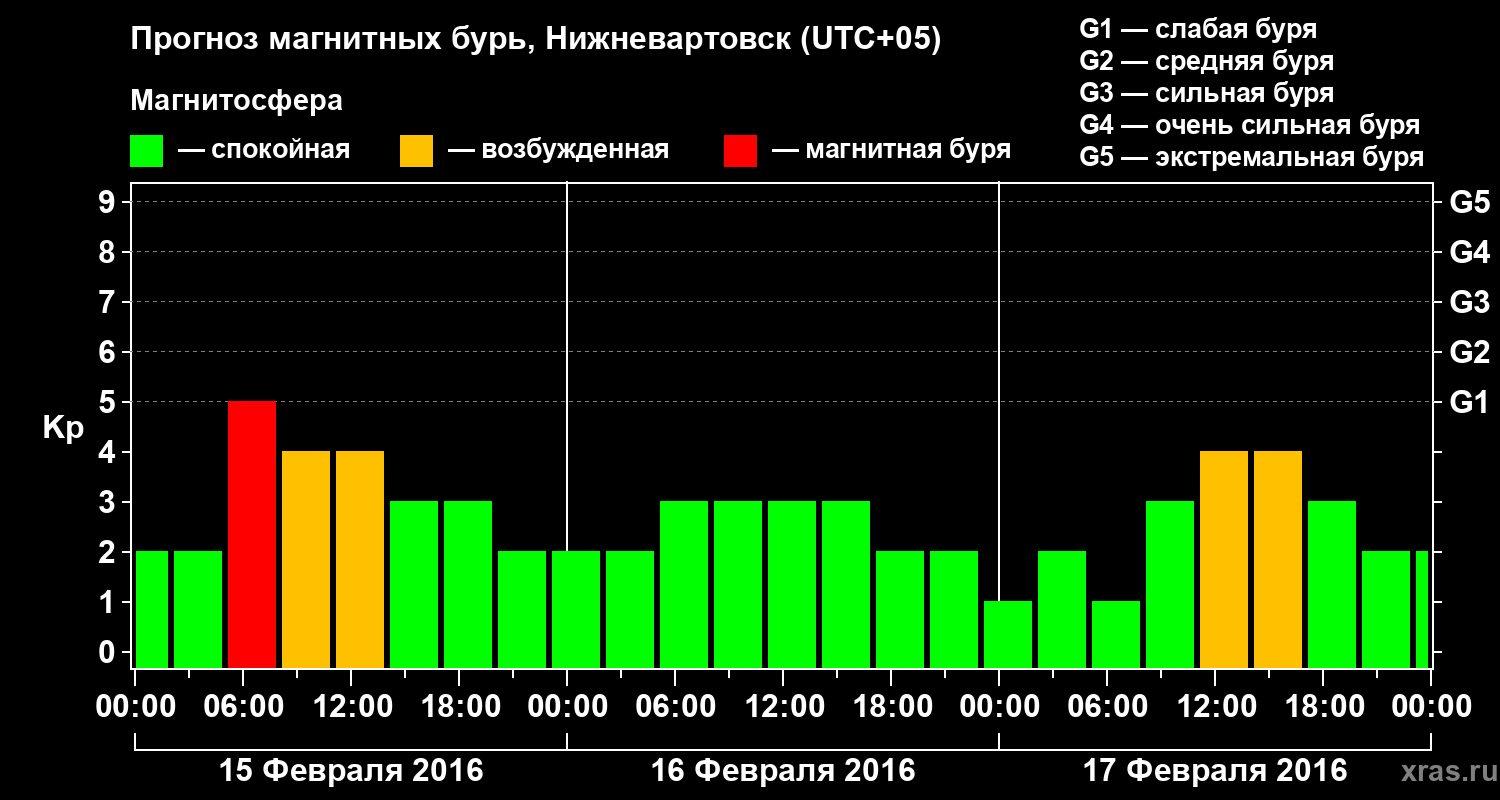 Прогноз магнитных бурь в Нижневартовске на 15 февраля 2016 года