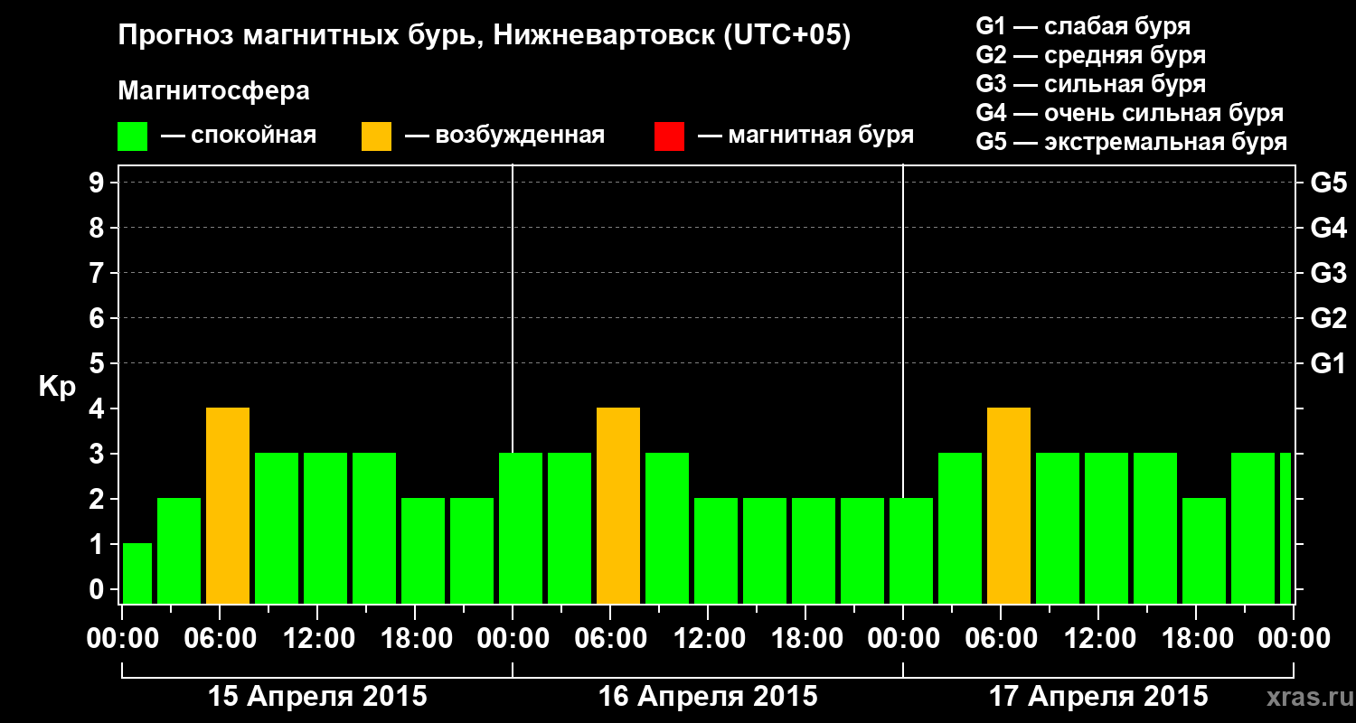 Прогноз магнитных бурь в Нижневартовске на 15 апреля 2015 года