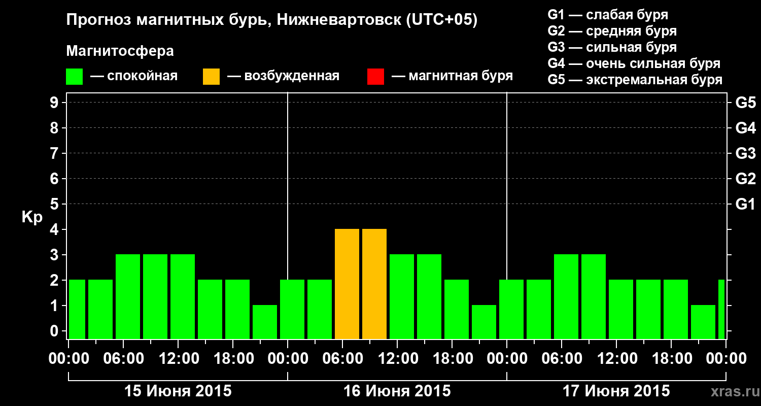 Прогноз магнитных бурь в Нижневартовске — 15 июня 2015 года