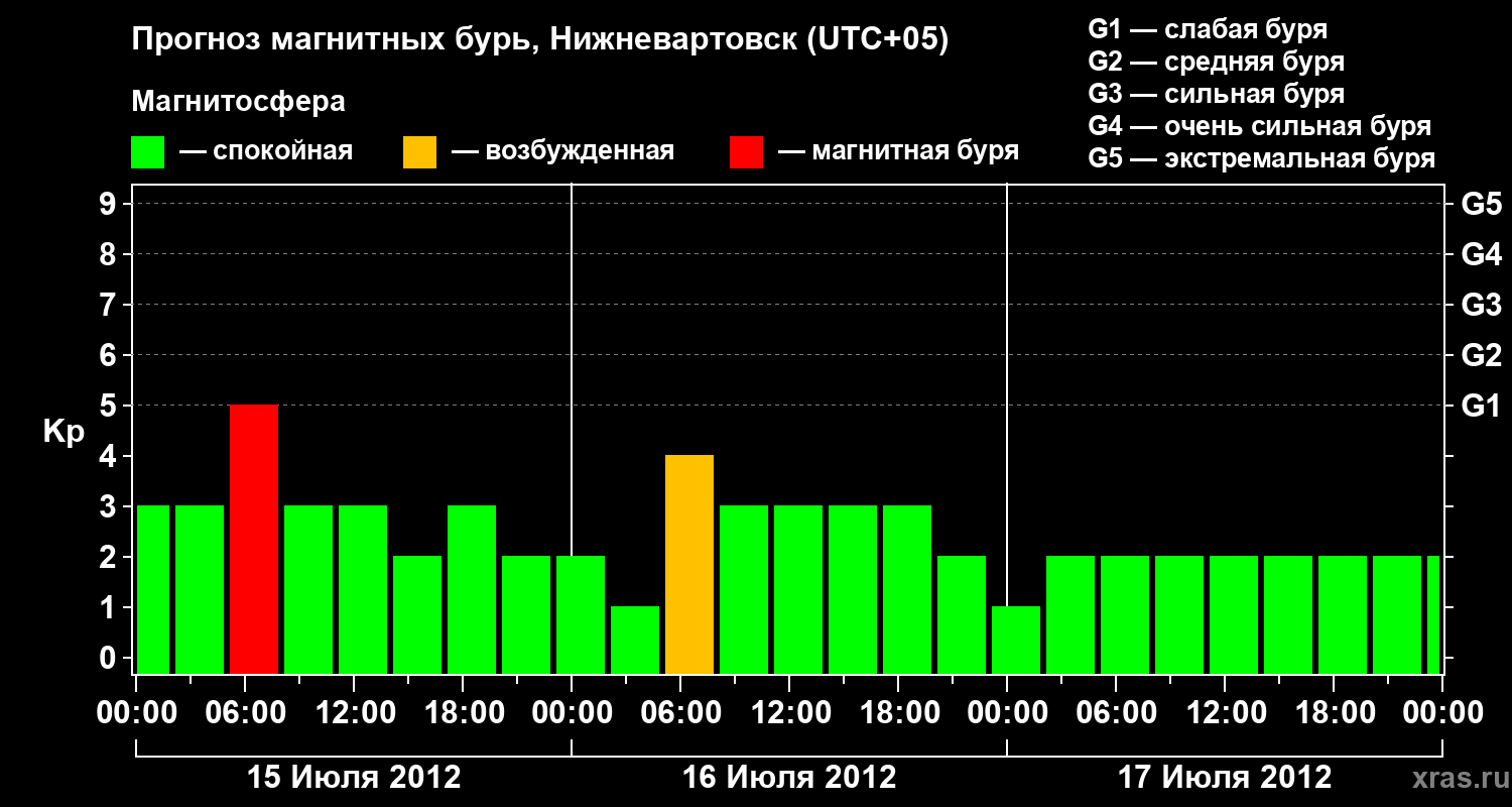 Прогноз магнитных бурь в Нижневартовске — 15 июля 2012 года