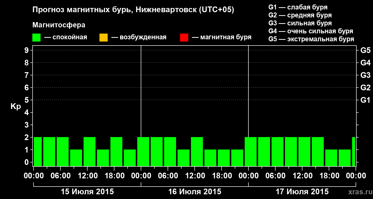 Прогноз магнитных бурь в Нижневартовске — 15 июля 2015 года