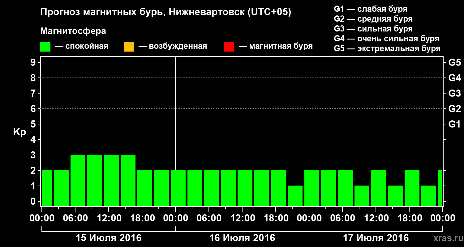 Прогноз магнитных бурь в Нижневартовске — 15 июля 2016 года