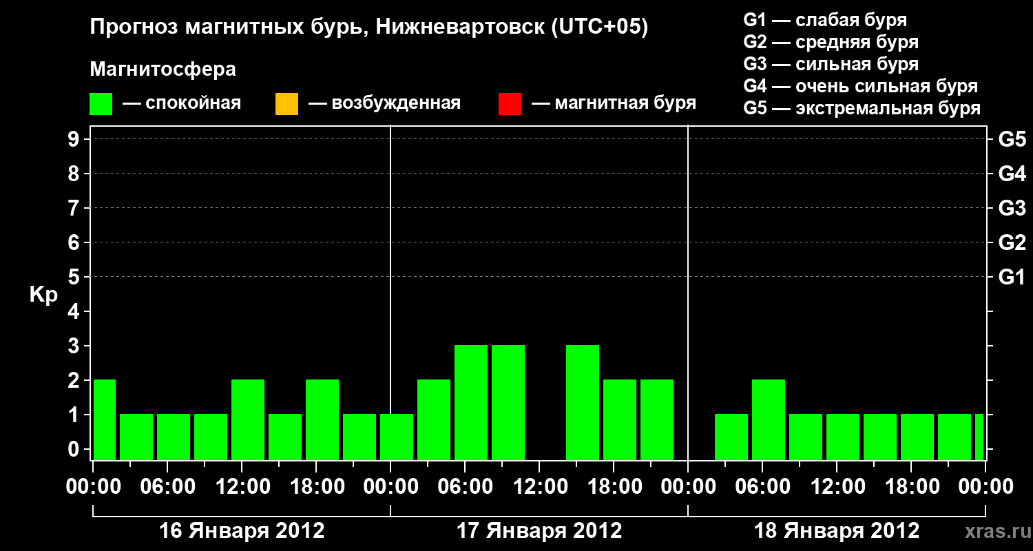 Прогноз магнитных бурь в Нижневартовске — 16 января 2012 года