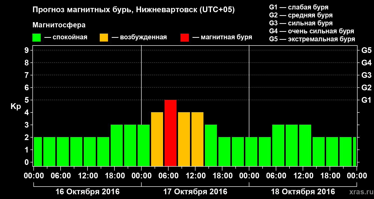 Прогноз магнитных бурь в Нижневартовске — 16 октября 2016 года