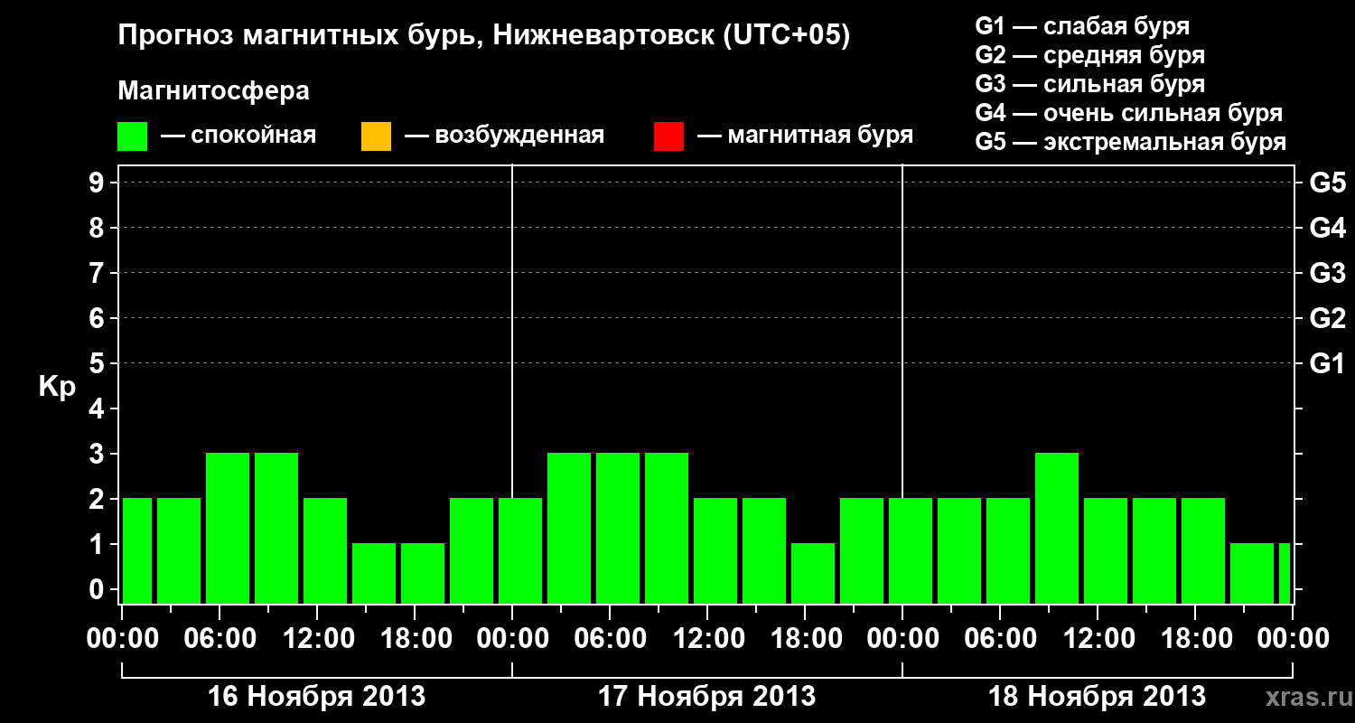 Прогноз магнитных бурь в Нижневартовске — 16 ноября 2013 года