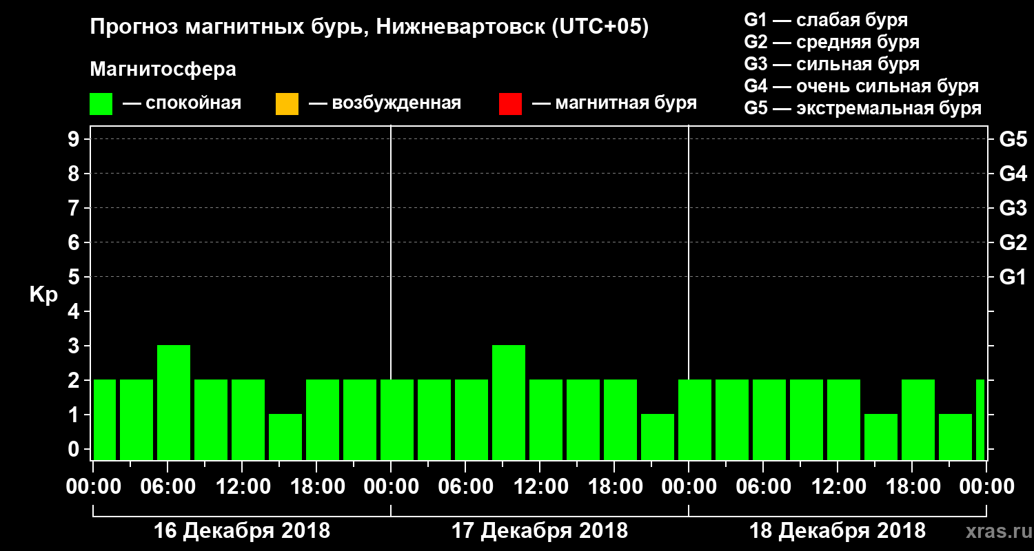 Прогноз магнитных бурь в Нижневартовске на 16 декабря 2018 года