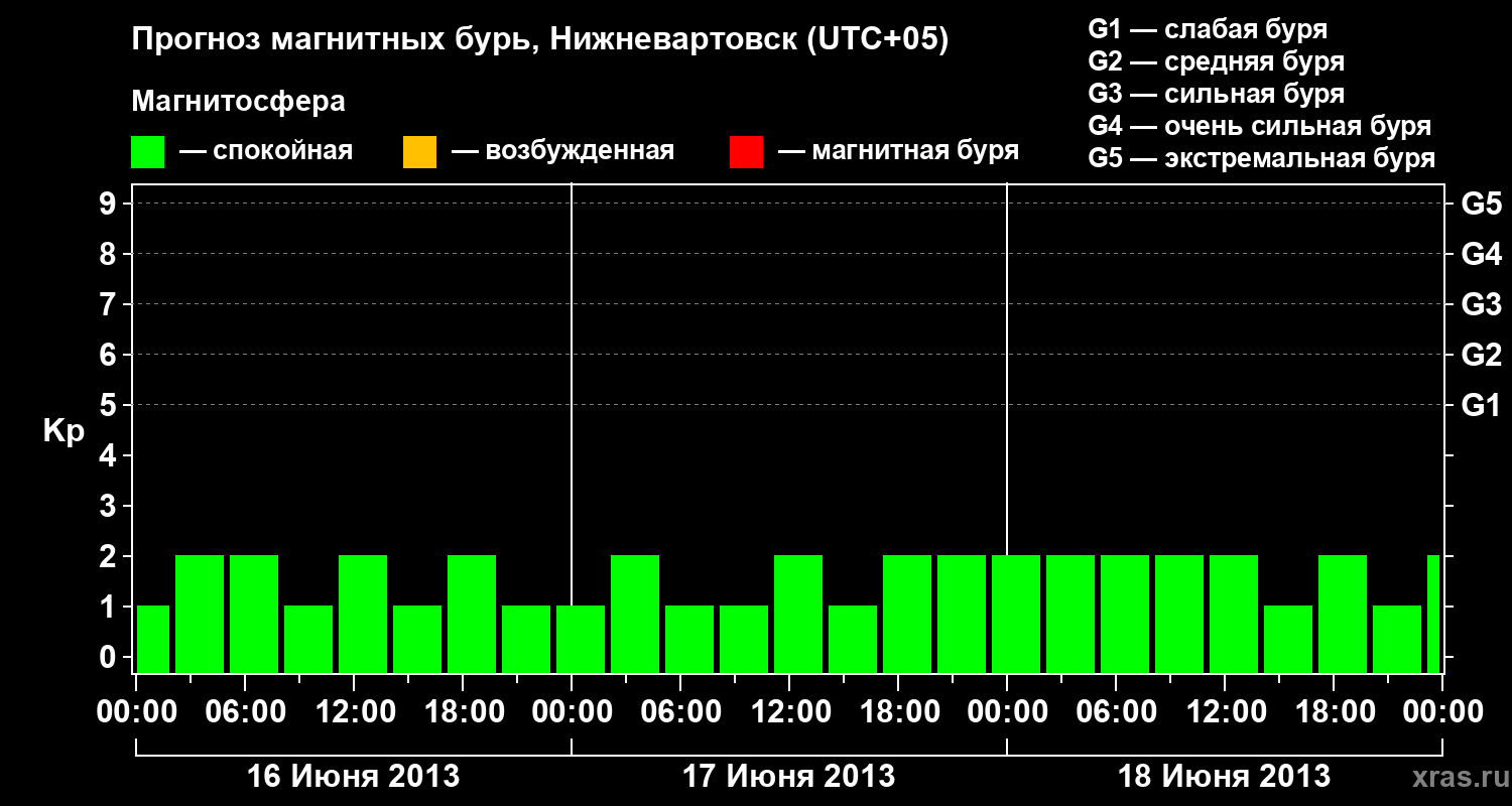 Прогноз магнитных бурь в Нижневартовске — 16 июня 2013 года