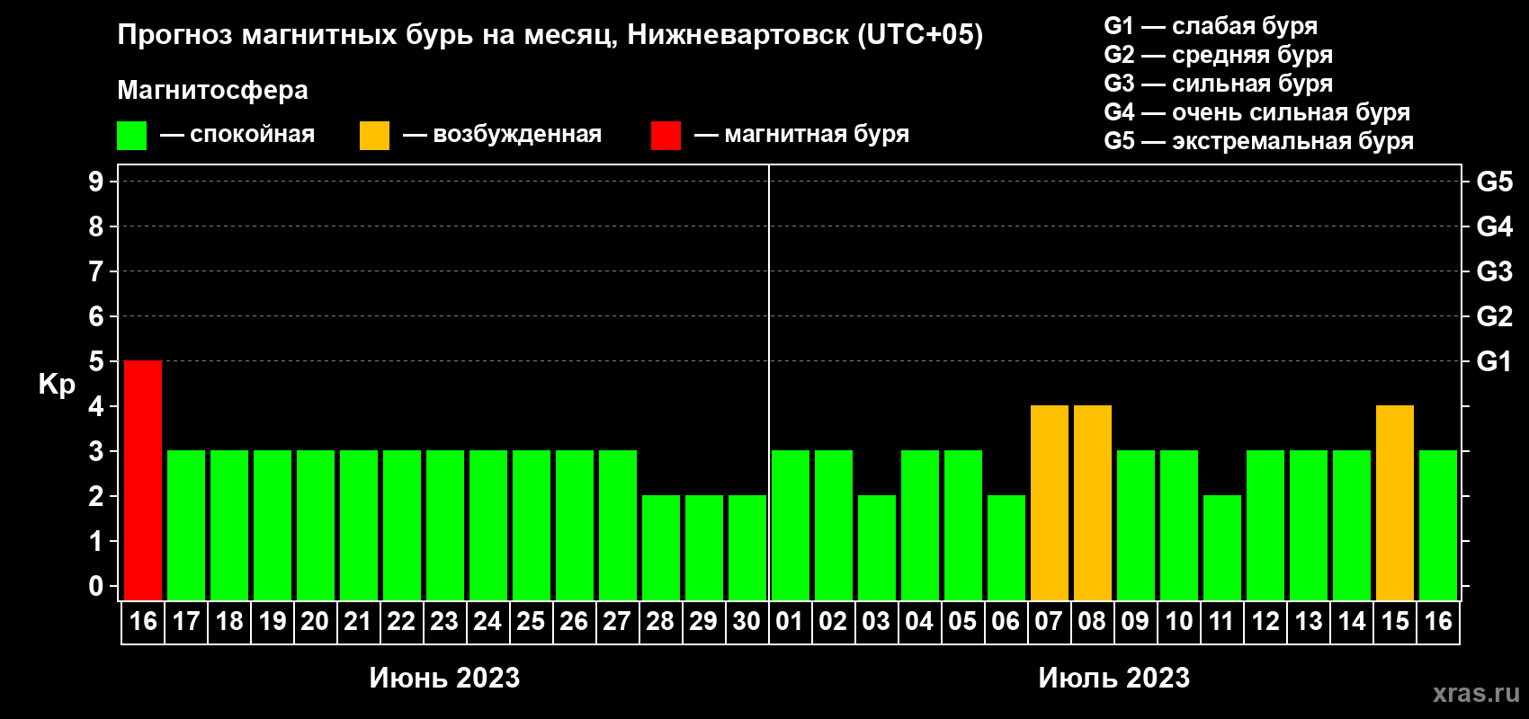 Прогноз магнитных бурь в Нижневартовске — 16 июня 2023 года