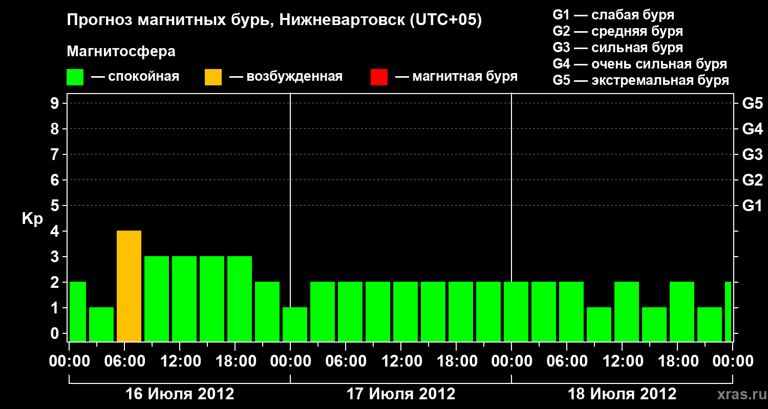 Прогноз магнитных бурь в Нижневартовске — 16 июля 2012 года