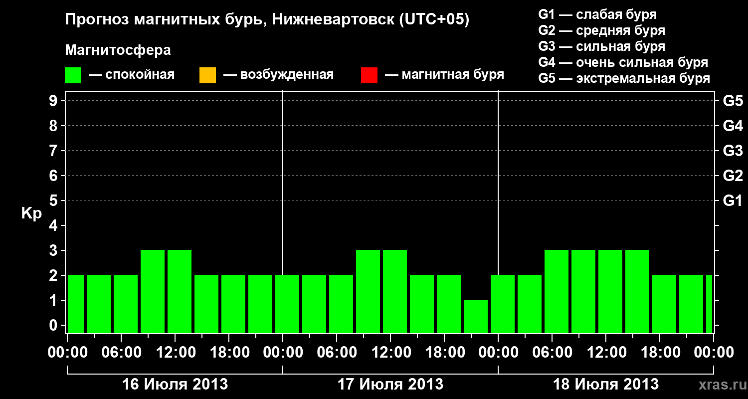 Прогноз магнитных бурь в Нижневартовске — 16 июля 2013 года