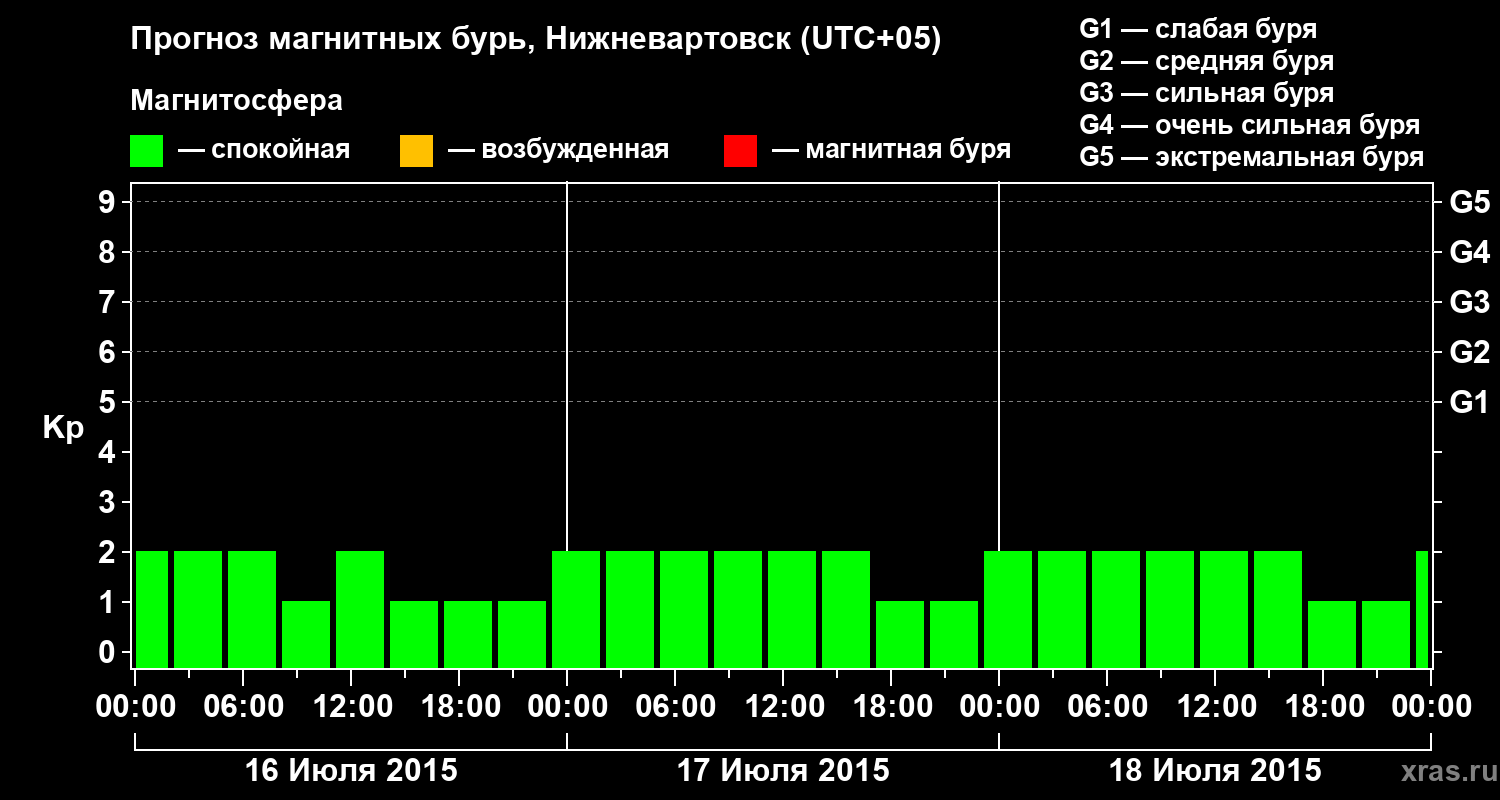 Прогноз магнитных бурь в Нижневартовске — 16 июля 2015 года