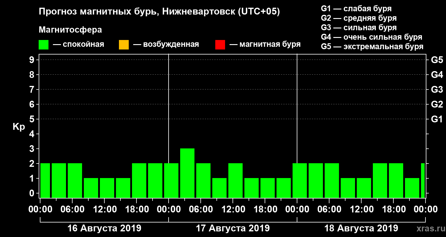 Прогноз магнитных бурь в Нижневартовске на 16 августа 2019 года