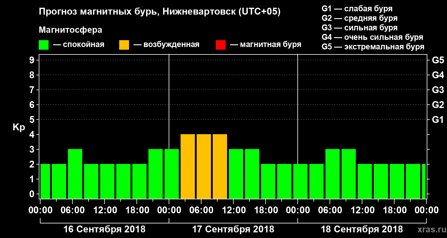 Прогноз магнитных бурь в Нижневартовске на 16 сентября 2018 года
