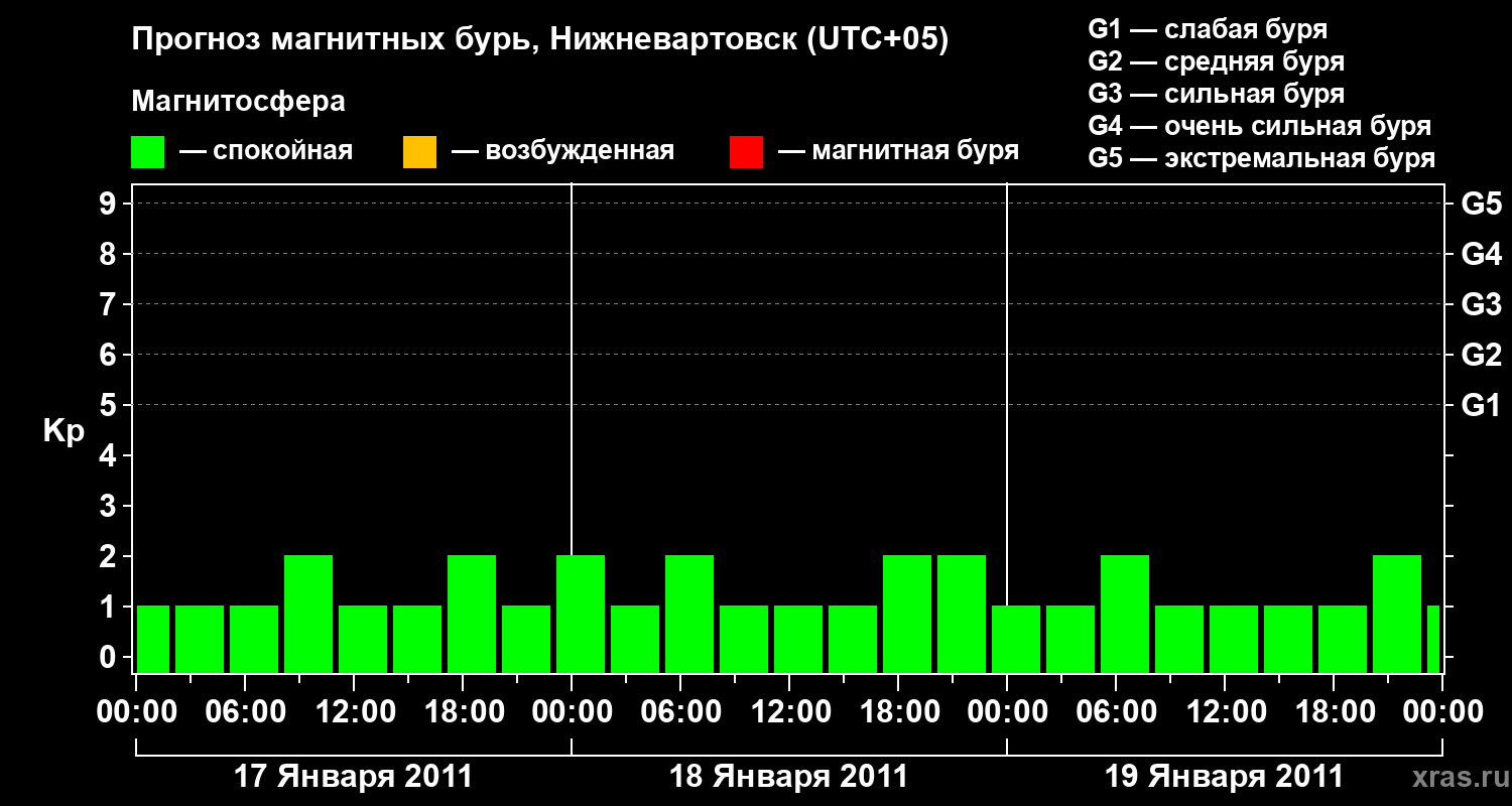 Прогноз магнитных бурь в Нижневартовске — 17 января 2011 года