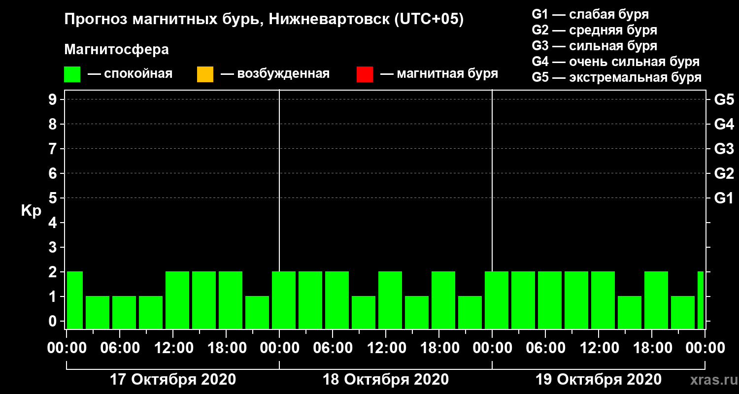 Прогноз магнитных бурь в Нижневартовске — 17 октября 2020 года
