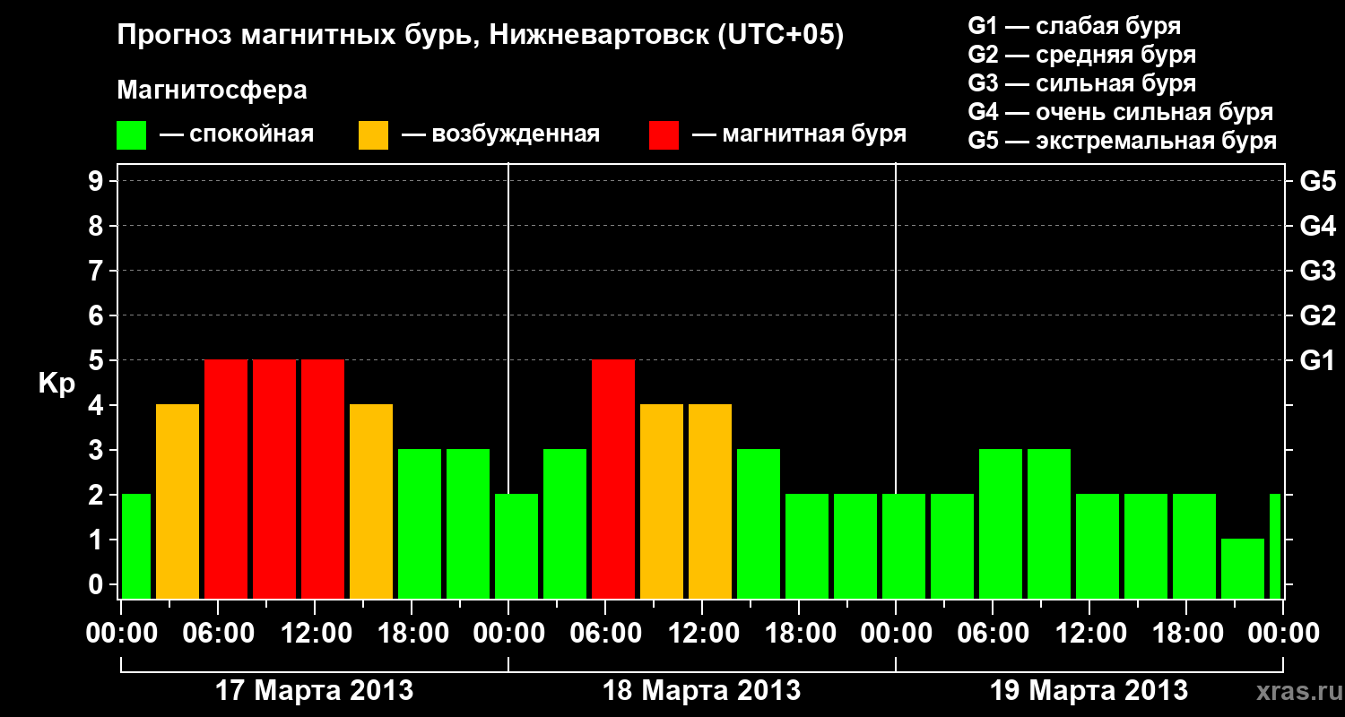 Прогноз магнитных бурь в Нижневартовске — 17 марта 2013 года