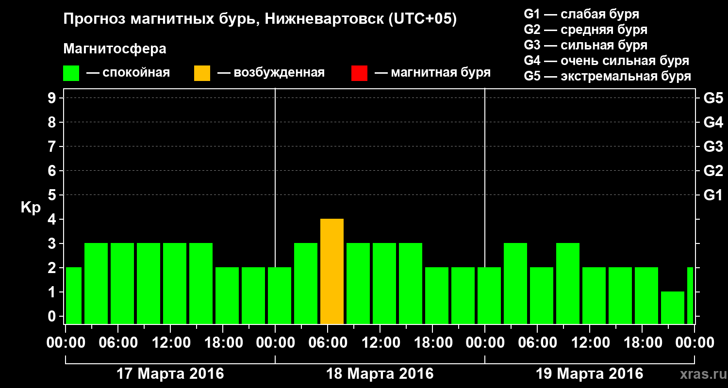 Прогноз магнитных бурь в Нижневартовске — 17 марта 2016 года
