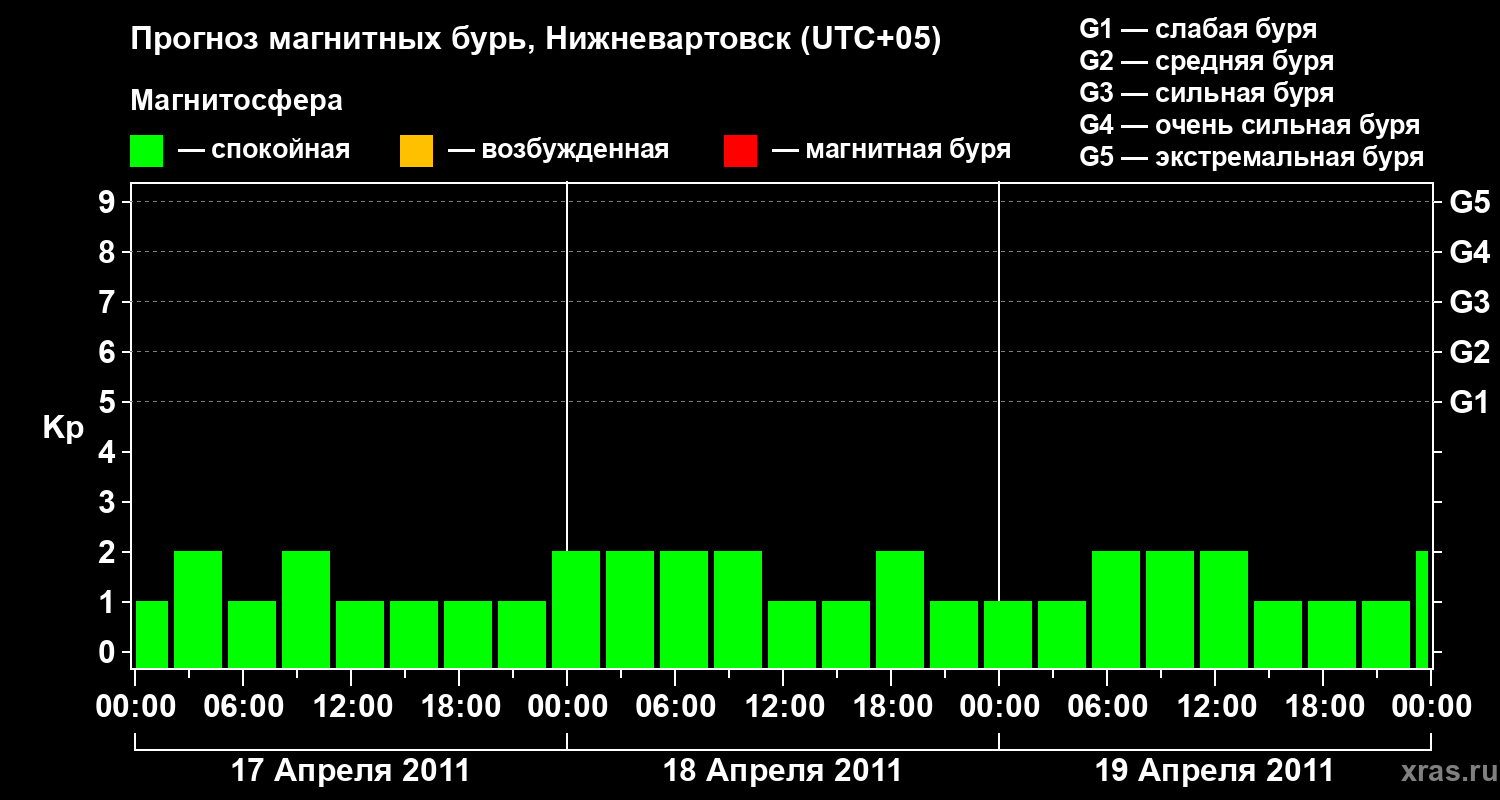 Прогноз магнитных бурь в Нижневартовске на 17 апреля 2011 года