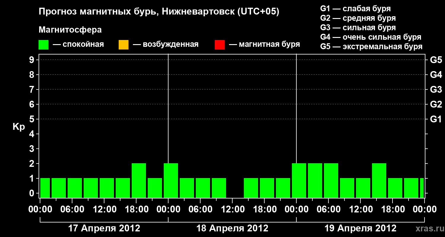 Прогноз магнитных бурь в Нижневартовске на 17 апреля 2012 года