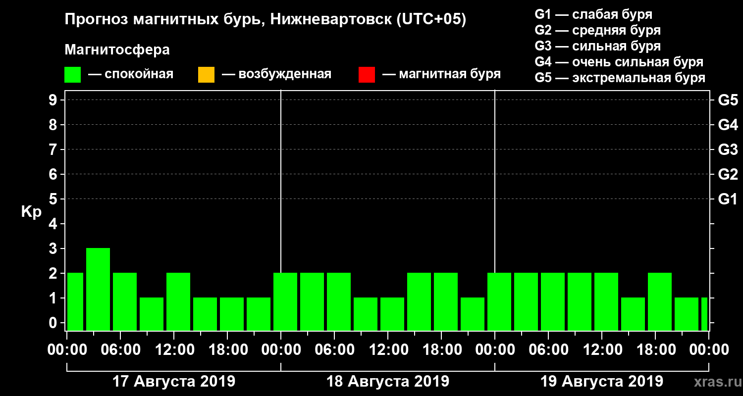Прогноз магнитных бурь в Нижневартовске — 17 августа 2019 года