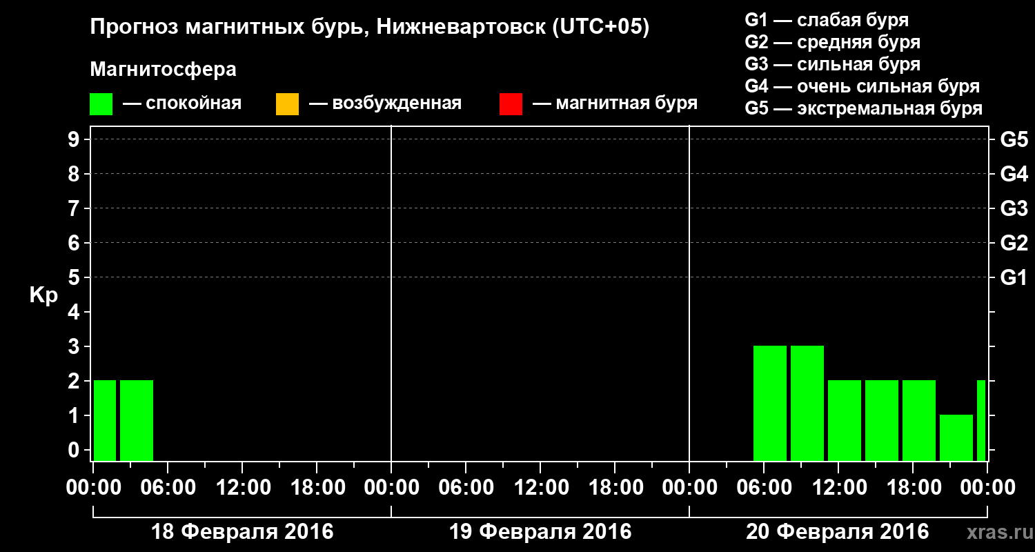 Прогноз магнитных бурь в Нижневартовске на 18 февраля 2016 года