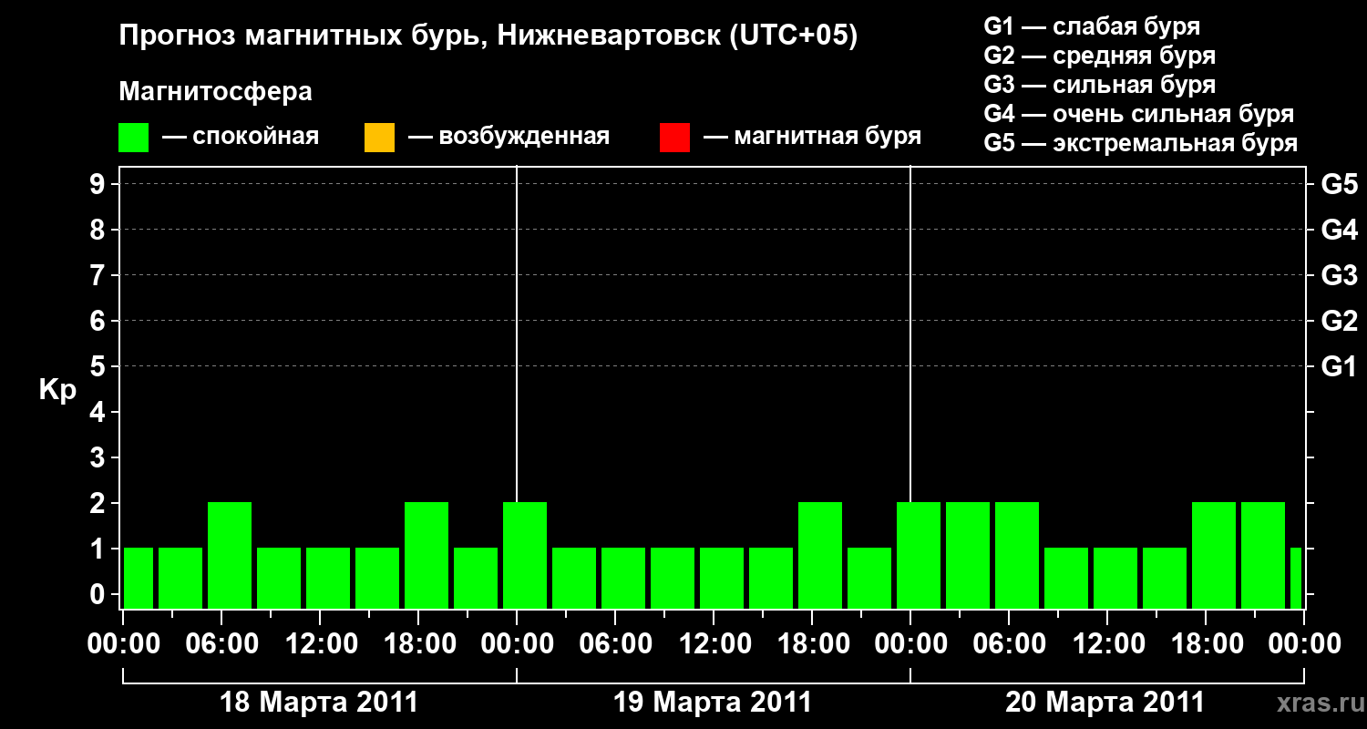 Прогноз магнитных бурь в Нижневартовске — 18 марта 2011 года