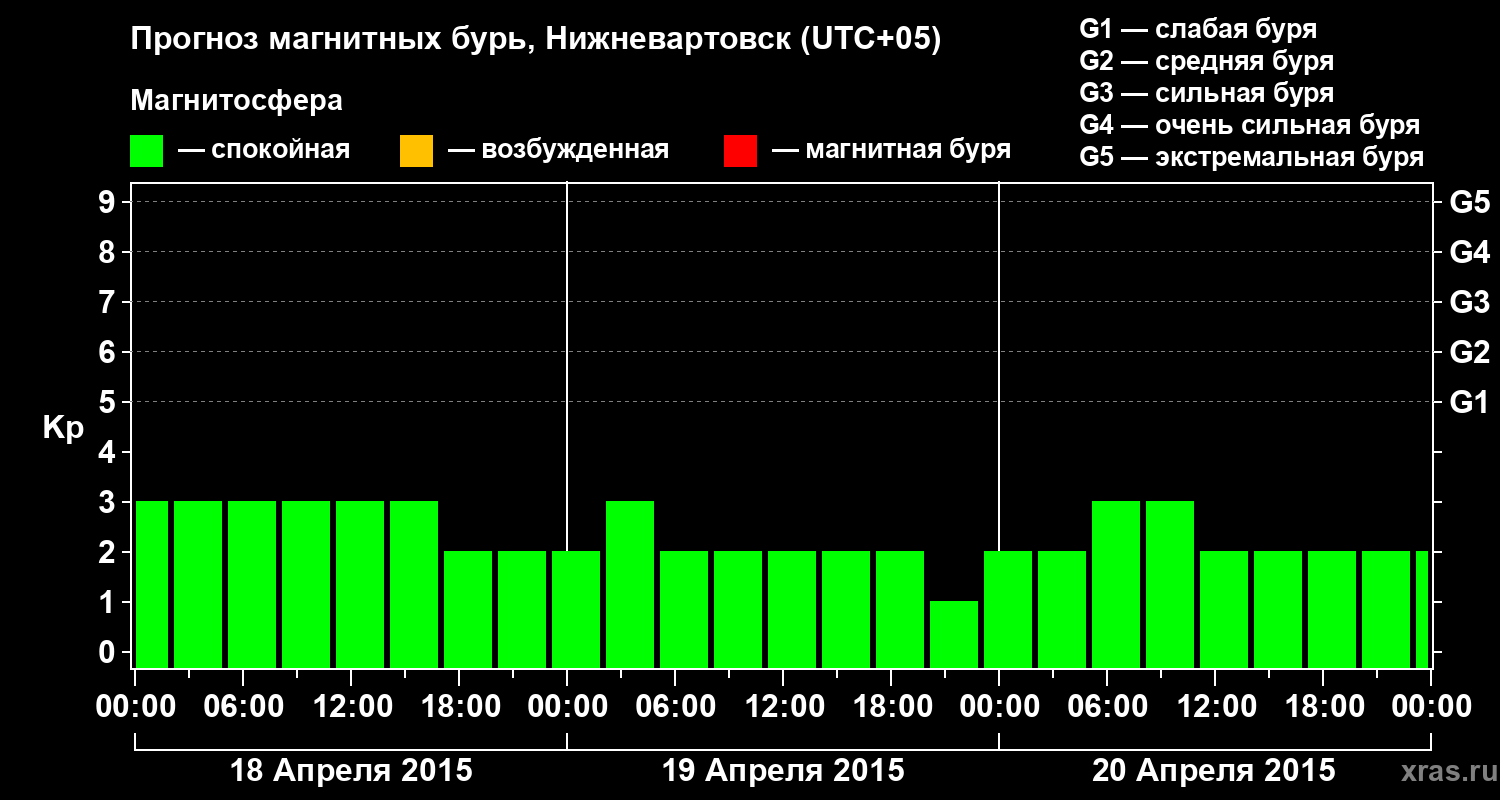 Прогноз магнитных бурь в Нижневартовске — 18 апреля 2015 года