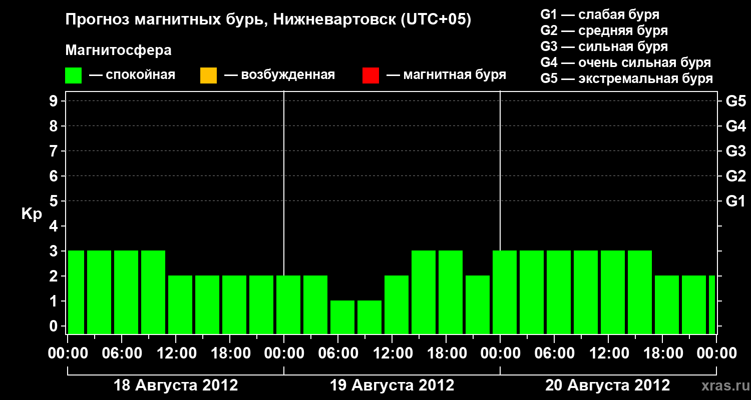 Прогноз магнитных бурь в Нижневартовске — 18 августа 2012 года